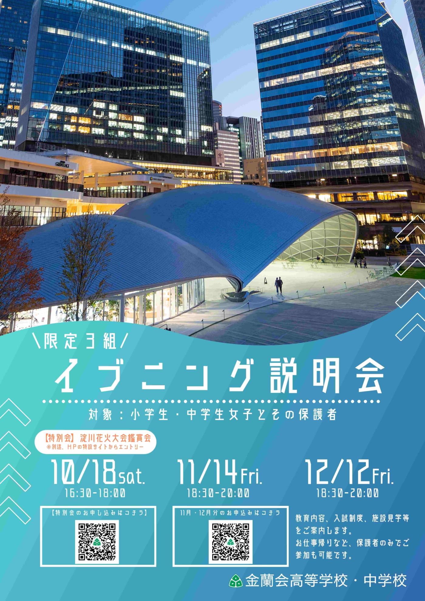 【淀川花火鑑賞会同時開催】10/18(土)イブニング説明会【オープンスクール参加者限定】