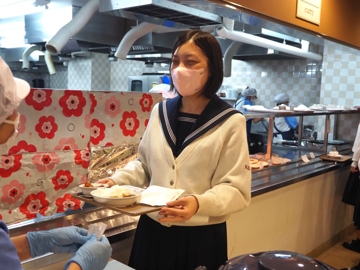 食堂スタッフさんに毎回きちんとご挨拶やお礼を伝える生徒がたくさんいます。