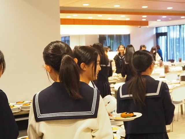 高校生の食堂では、入ってすぐに「なんかいい匂いがする♬」と久しぶりの食堂にわくわくしている姿が見られました。