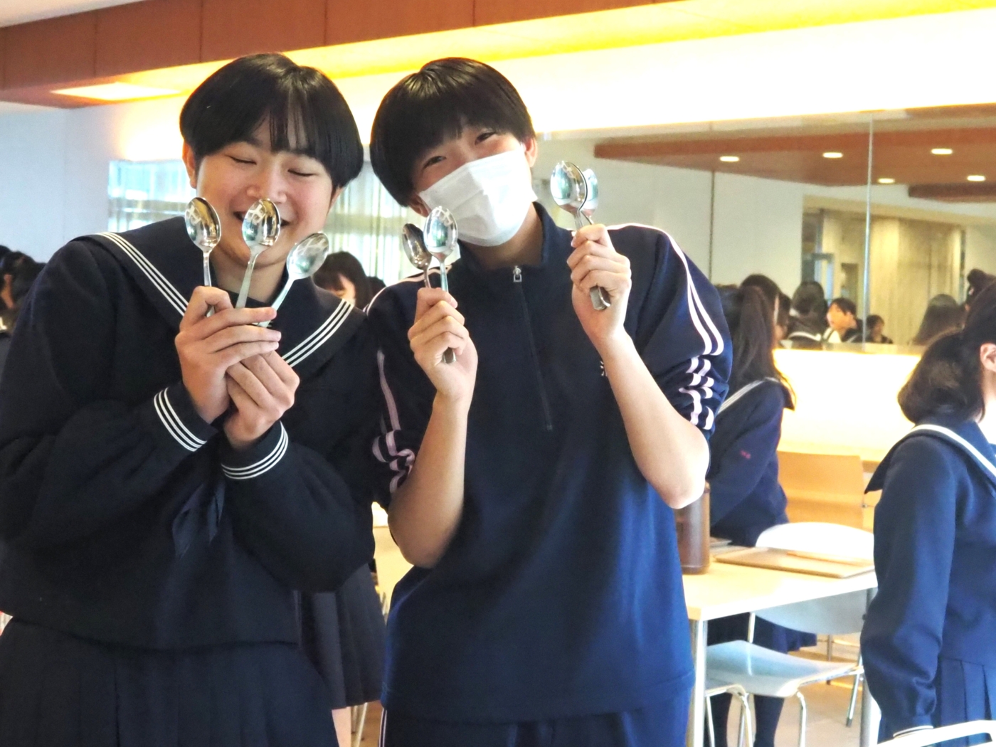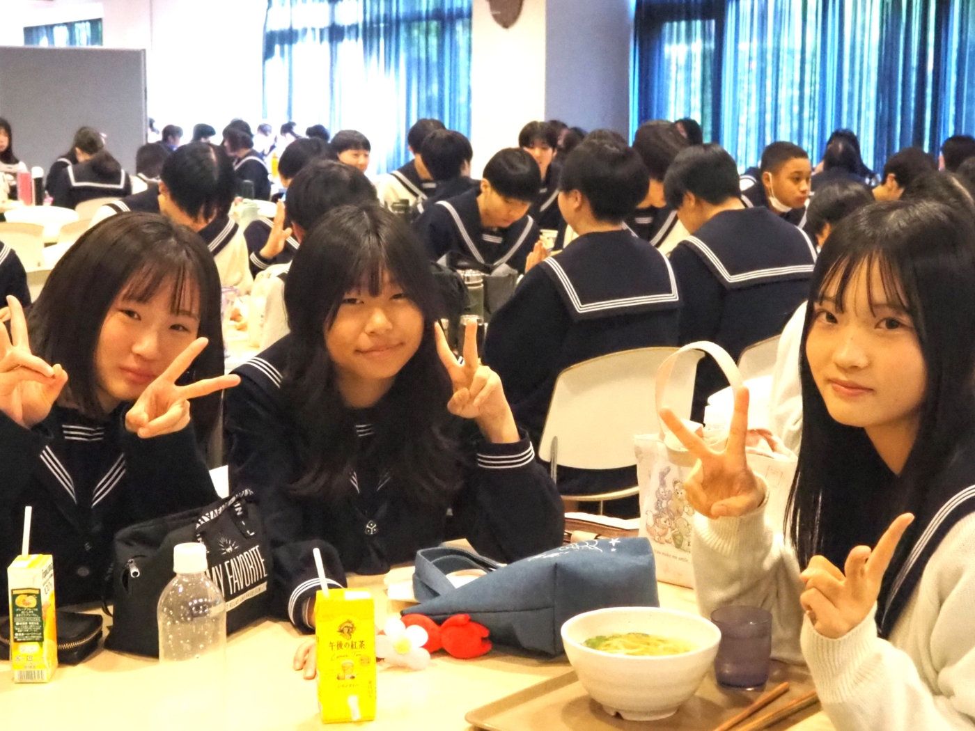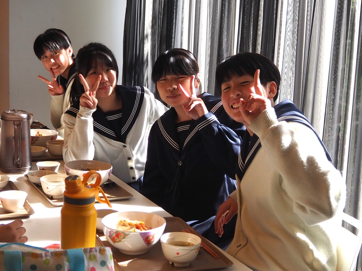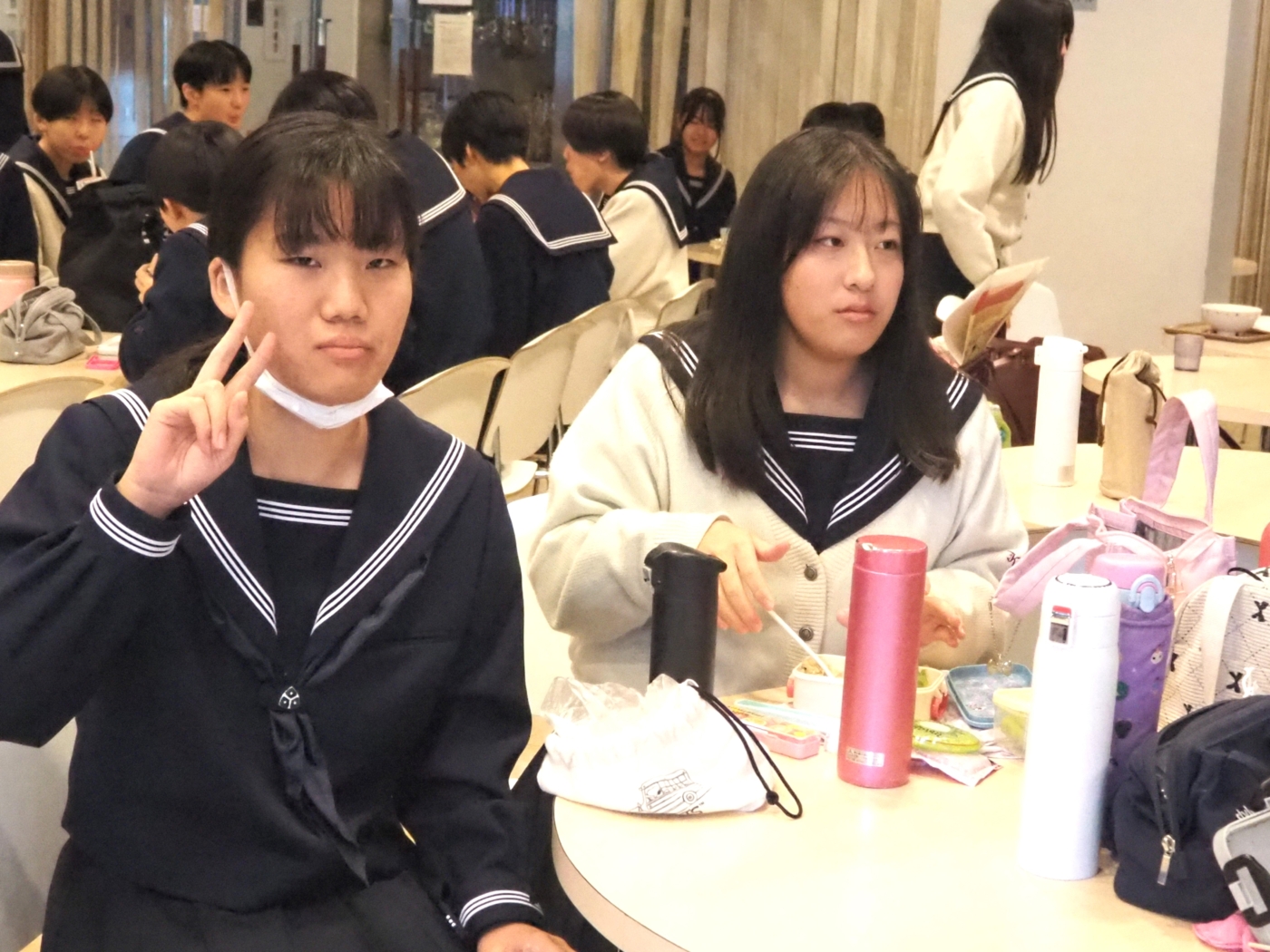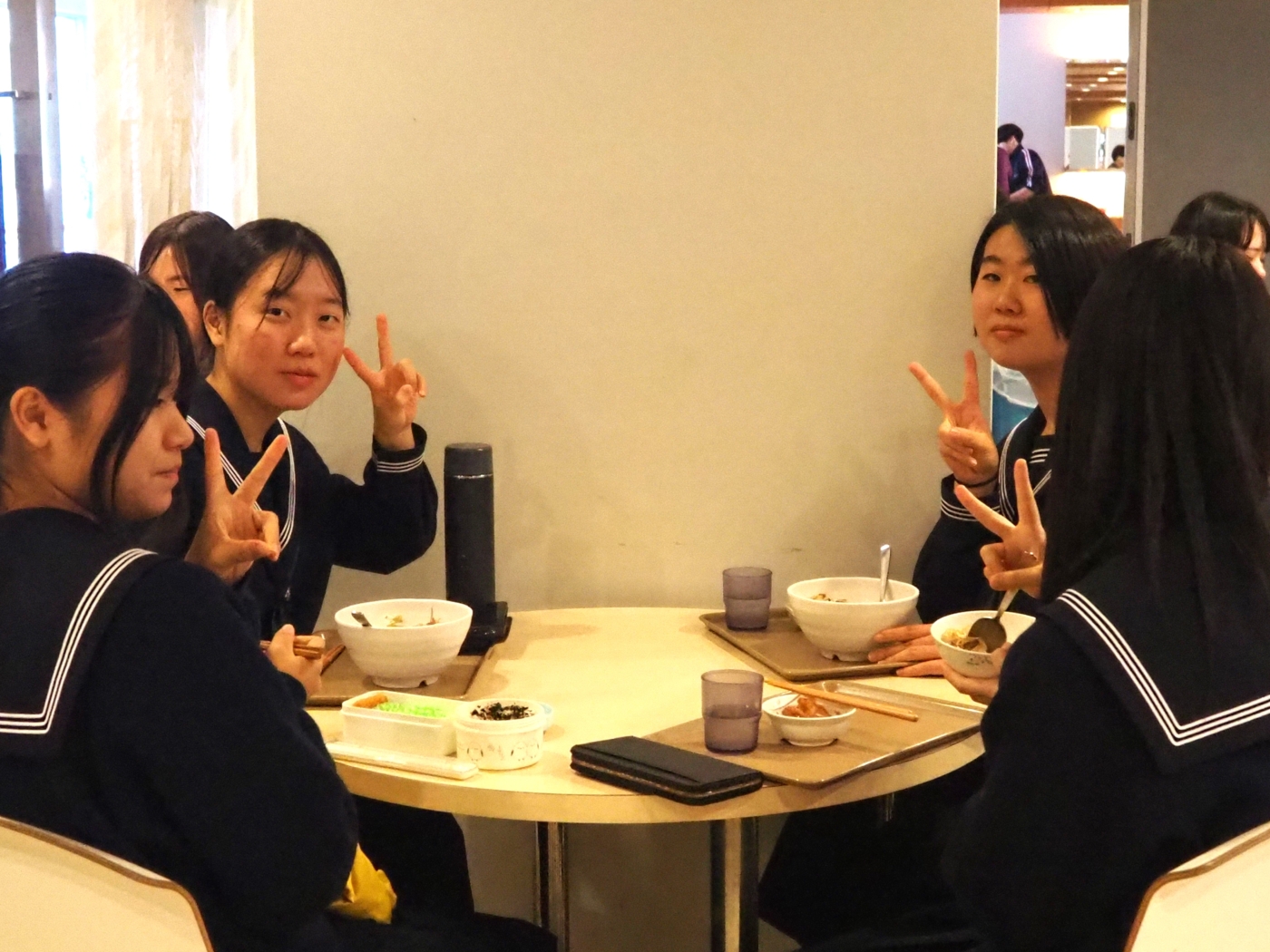 お弁当持参のお友達と一緒に賑やかに食事していた生徒たち♪