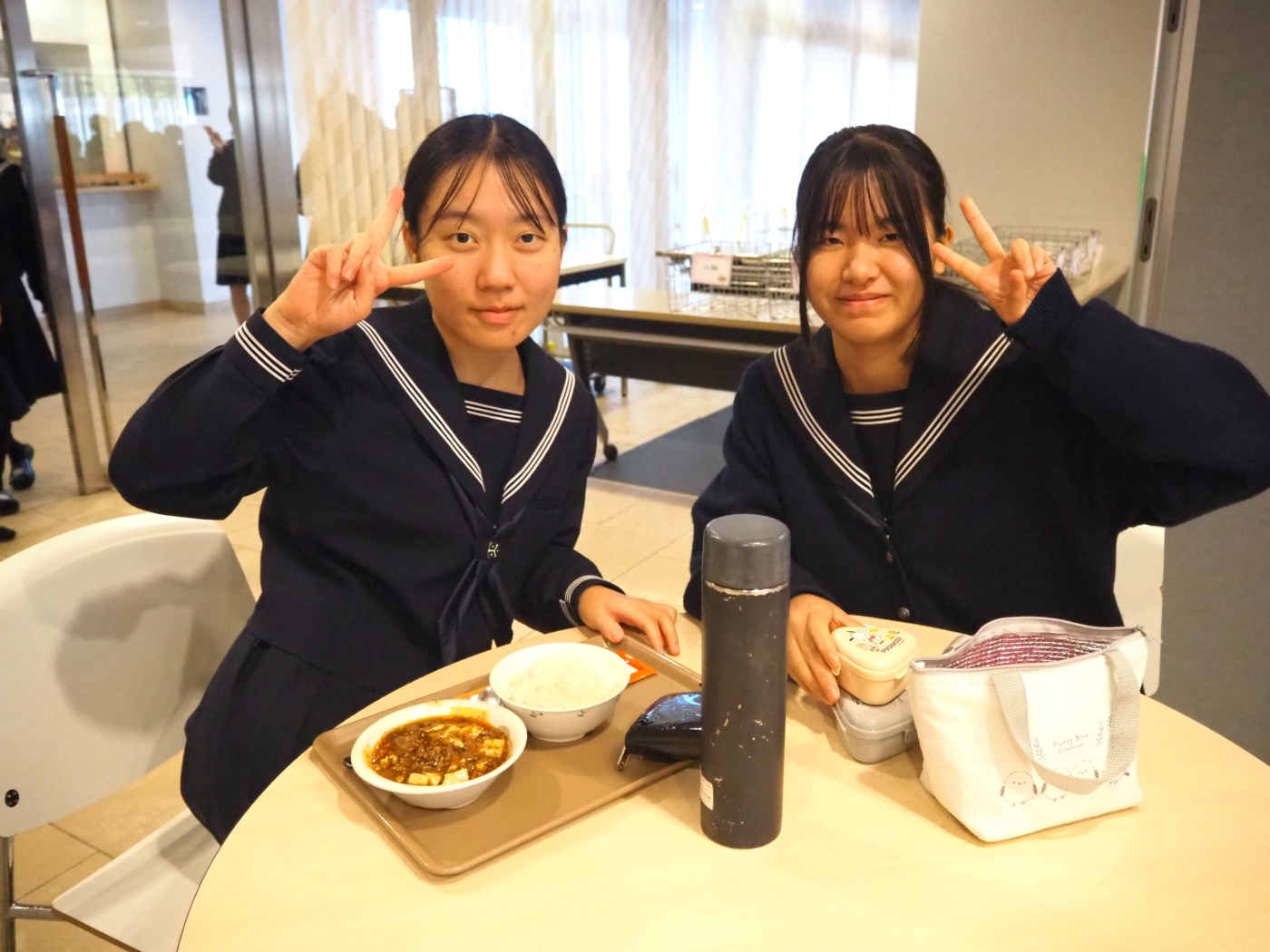 高校生の食堂にも、麻婆豆腐や揚げギョーザが並んでいました。