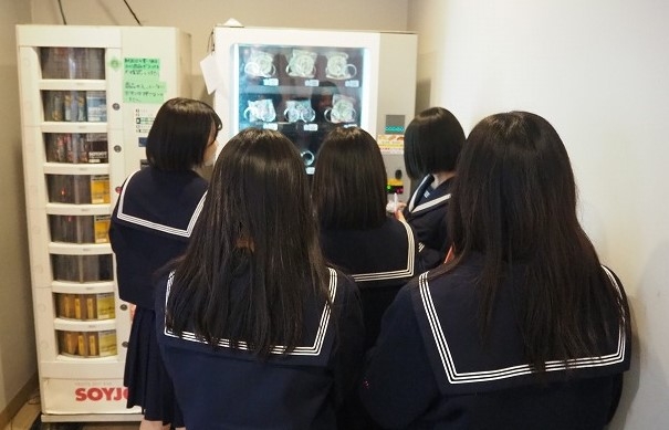 高校生の食堂は自動販売機の前にも列ができていました。何を買っているのでしょう。