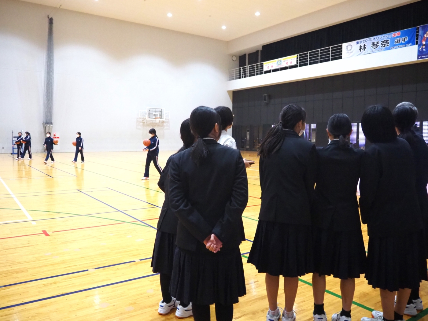 体育館での体育の授業。「天井が高ーい!」と驚いていました。