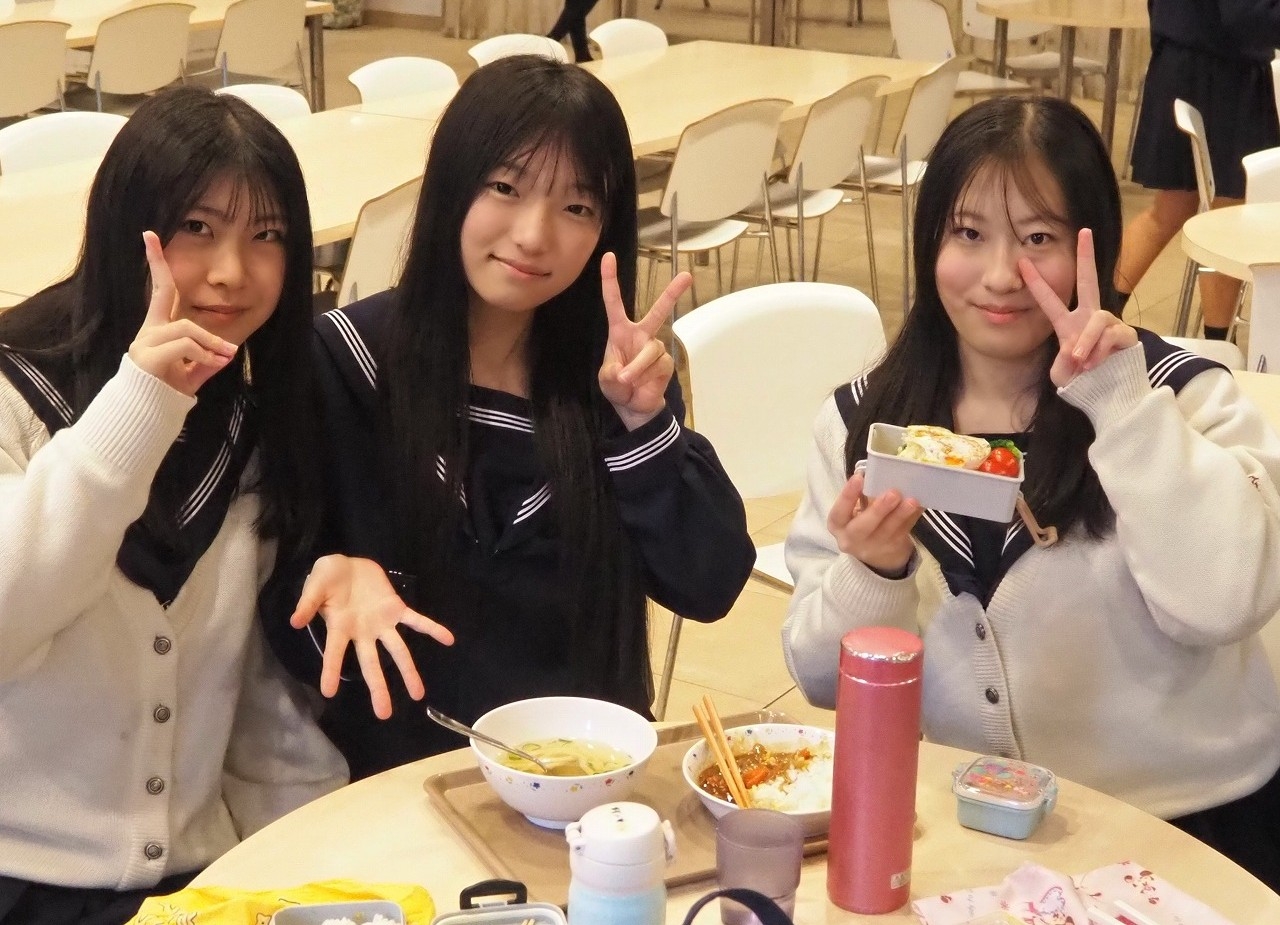 今朝は雪景色で寒かったですね。食堂はいつものように生徒たちの楽しい雰囲気でした。